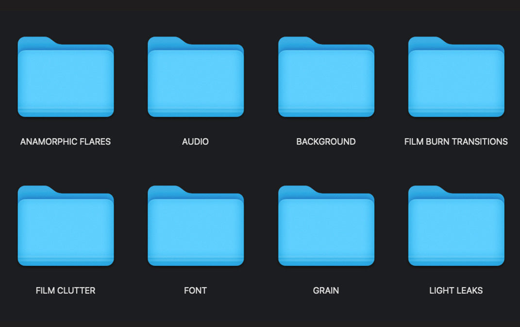 - 4 film grain overlays: 8mm, 16mm, 35mm, plus a universal grain